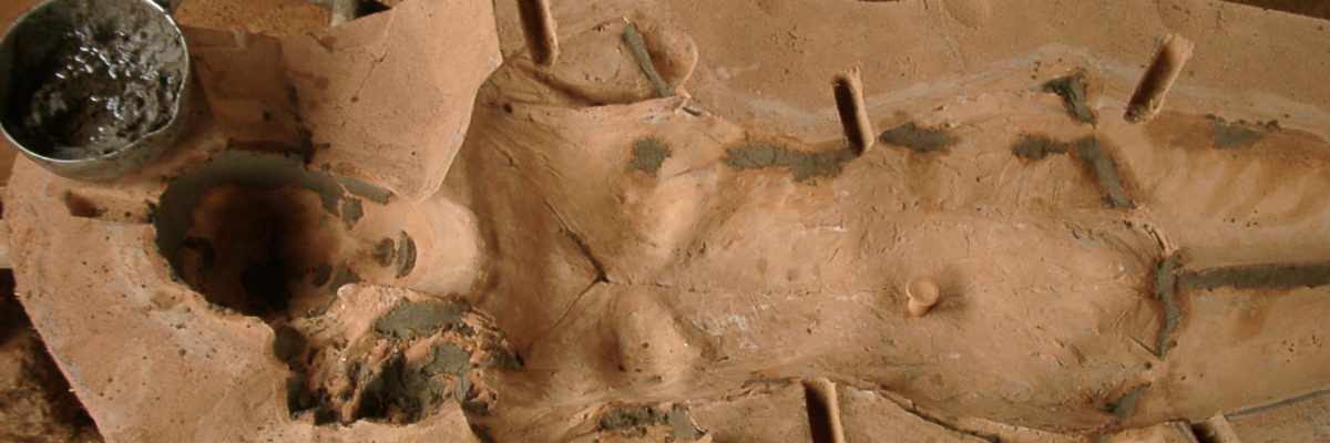 《石膏原型》鹿野幸子作『こぼれる花』H174cm